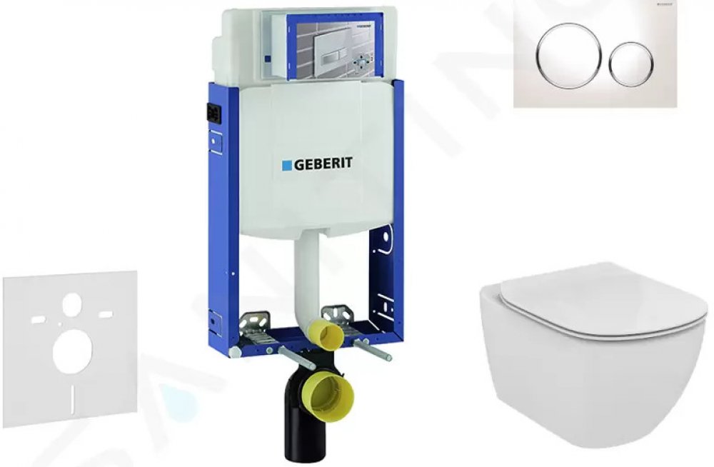 Set předstěnové instalace, klozetu a sedátka Ideal Standard Tesi, tlačítka Sigma20, bílá/chrom