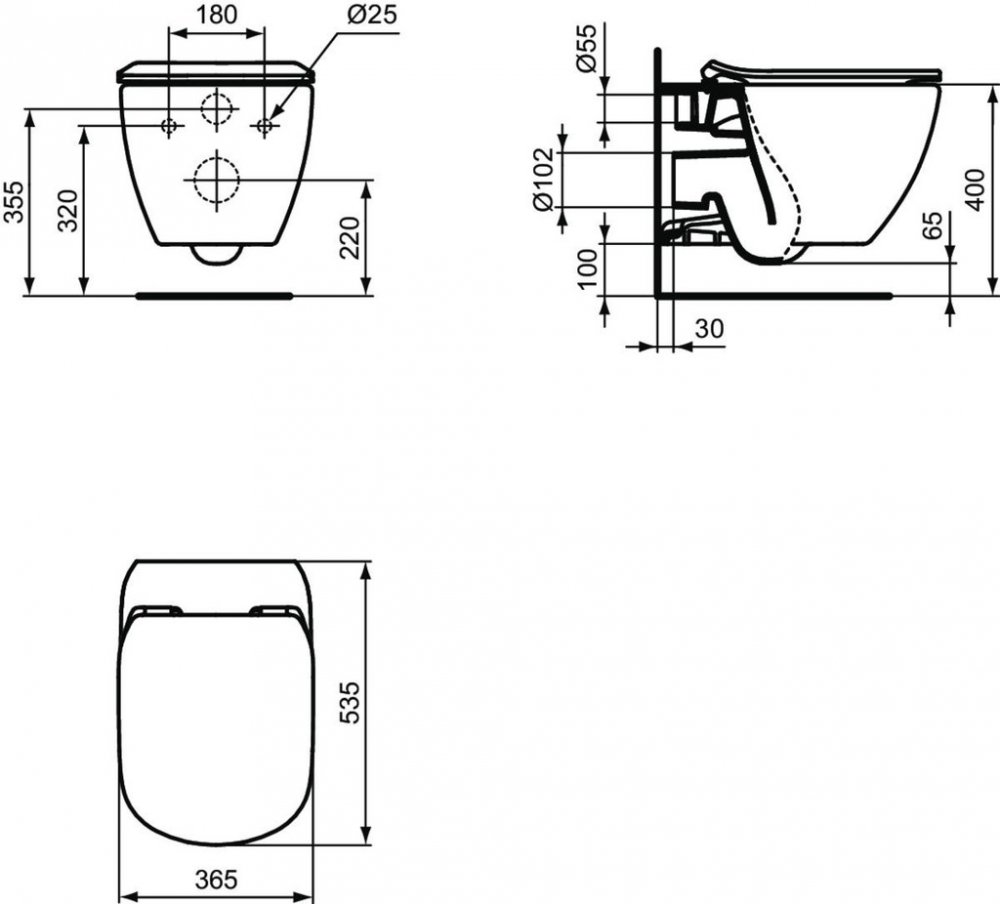 Ideal Standard horizontální závěsné hluboké 26.5 kg keramické oblé 33.5 cm 53.5 cm bílé 4,5 l 36.5 cm