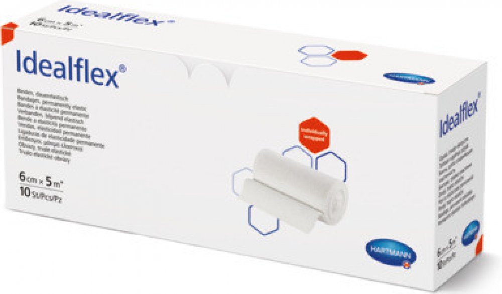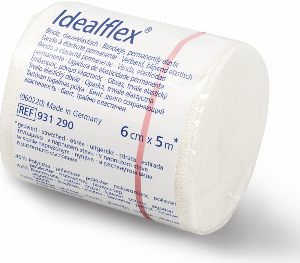 Idealflex (6 cm x 5 m*) je trvale elastický krátkotažný kompresivní obvaz. * v napnutém stavu
