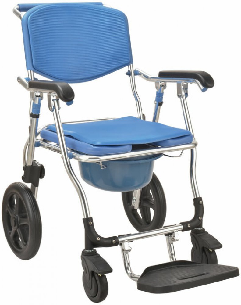 - Snadná manipulace: Židle je vybavena dvěma velkými zadními koly o průměru 30 cm a dvěma předními koly s brzdami pro bezpečné a jednoduché ovládání. Pohodlné tlačné madlo umožňuje snadný přesun.