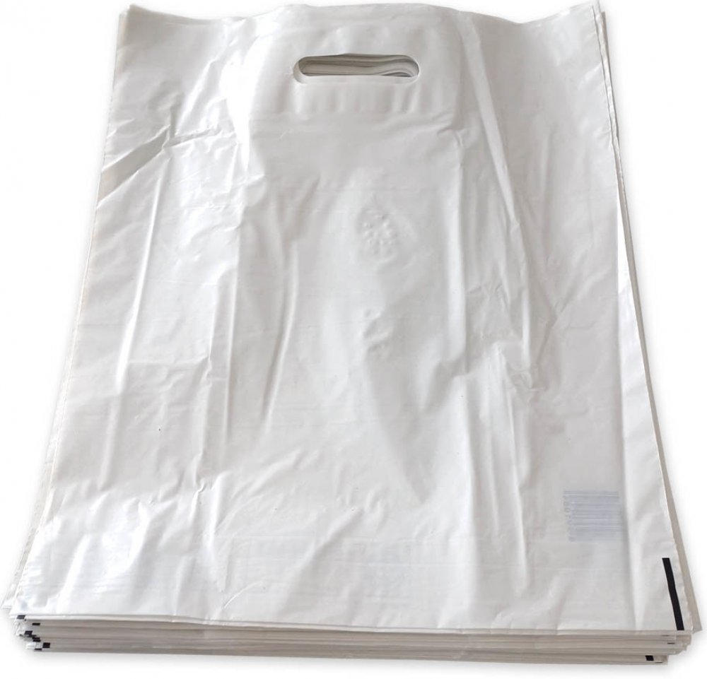 Igelitová taška s průhmatem a složeným dnem, lehká, skladná, pevná, vhodná pro přenos zboží do 10 kg, materiál: ldpe, barva: bílá, rozměry: 38 x 45 cm, balení po 50 ks,