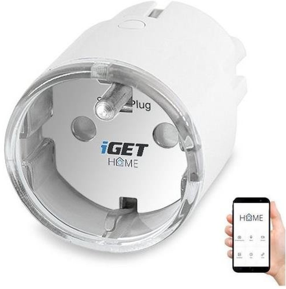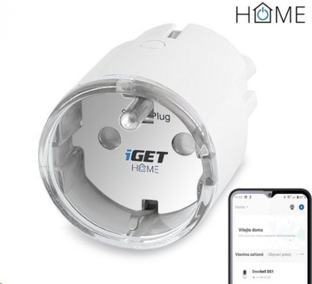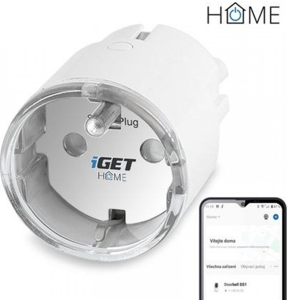 Chytrá zásuvka ovládaná přes WiFi, kompatibilní s aplikací iGET HOME, Google Assistant a Amazon Alexa, měření spotřeby energie, max. zatížení 3680 W, aplikace pro Android a iOS zdarma v češtině, nastavení časovačů, statistiky. Podpora Home Assistant.