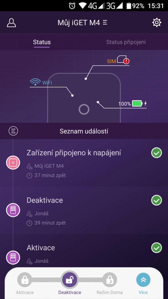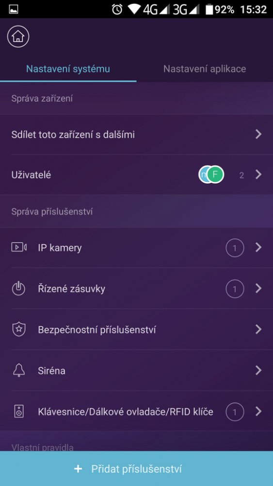 Pokud chce administrátor přidat další uživatele, je to velmi snadné. Stačí nainstalovat na další mobilní telefon aplikaci „iGET M4“. Poté na prvním telefonu zobrazit QR kód pro sdílení a pomocí druhého telefonu v aplikaci naskenovat. Párování je tím dokončeno.