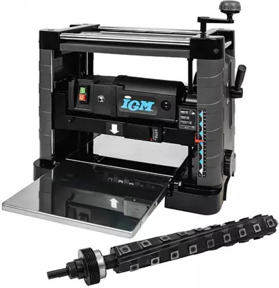 První stolní tloušťkovačka se spirálovým válcem s tvrdokovovými žiletkami na evropském trhu. Spirálový žiletkový hoblovací válec Nevyžaduje odsavač pilin díky integrovanému ventilátoru pro odvod pilin od hoblovacího válce Výkonný motor s masivní převodovkou Sklopný vstupní a výstupní stůl Aretace výšky tloušťkování Hloubkový doraz se sedmi polohami pro opakované tloušťkování stejné výšky Maximální šířka dílce až 330 mm Přesně opracovaná spirálová hoblovací hlava s 36 tvrdokovovými žiletkami osazenými ve 4 spirálách pro maximální čistotu a efektivitu opracování. Spirálová hlava snadno a velmi čistě hobluje i velmi tvrdá a exotická dřeva, dřevo napříč, nevyštípává suky a hoblovaný povrch je za všech podmínek mnohem hladší než po opracování běžnými noži. Tvrdokovové žiletky mají několikanásobně vyšší výdrž proti klasickému hoblovacímu HSS noži a lze je 4x otočit pro ještě delší životnost bez výměny nebo zdlouhavého čekání na broušení a nutnosti ustavování ve válci. Stroj lze používat i bez odsavače pilin, díky integrovanému ventilátoru a prachovému sáčku, pro efektivní odvod pilin od válce. Lze zde samozřejmě připojit i průmyslový vysavač nebo odsavač prachu a pilin. Výška protahování je aretovatelná, pro maximální přesnost tloušťkování. Pro maximální bezpečnost při práci je stroj vybavený pogumovanými podávacími válci, které pevně drží a posouvají obrobek bez rizika zpětného rázu. Výkonný motor je vybavený ochranou proti přetížení a proti opětovnému spuštění při výpadku el. proudu. Hloubkový doraz na boční straně umožňuje snadné tloušťkování větší série se shodnou výškou, hloubkový doraz lze nastavit do 7 poloh od 3,2 mm do 38 mm. Součást balení: 36 ks tvrdokovových žiletek (ve válci) 5 ks náhradních tvrdokovových žiletek a šroubků Odpadní vak na piliny a prach Sada pro připojení odpadního vaku Torx klič pro výměnu žiletek (TX25) Typ: PS33 Doporučené použití: Řemeslník Příkon (230V): 1,8 kW Otáčky válce: 9 000 ot./min. Průměr válce: 46 mm Počet žiletek ve válci: 36 ks Rozměr žiletek: 15 x 15 x 2,5 mm, R=150 Rychlost posuvu protahování: 7,9 m/min. Max. úběr: 3,2 mm Max. šířka dílce: 330 mm Max. tloušťka dílce: 156 mm Min. délka dílce: 120 mm Odsávání: integrovaný ventilátor, hrdlo 62 mm pro odsávání nebo látkový vak Hlučnost: 96 db Rozměry stroje (délka x šířka x výška): 340 x 615 x 555 mm Rozměry stroje s rozloženými stoly (délka x šířka x výška): 850 x 615 x 555 mm Hmotnost stroje: 34 kg Rozměry balení (délka x šířka x výška): 415 x 660 x 545 mm Hmotnost balení: 39 kg