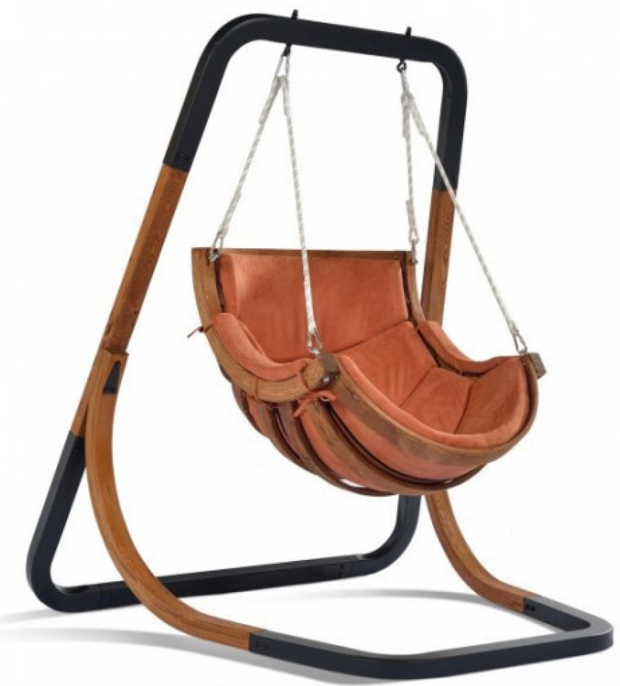 Unikátní závěsné houpací křeslo, které je jedničkou mezi podobnými výrobky na našem trhu. Konstrukce je vyrobena z ocelových profilů 7 x 5 cm o síle 1,5 mm a ohýbaného modřínového dřeva.