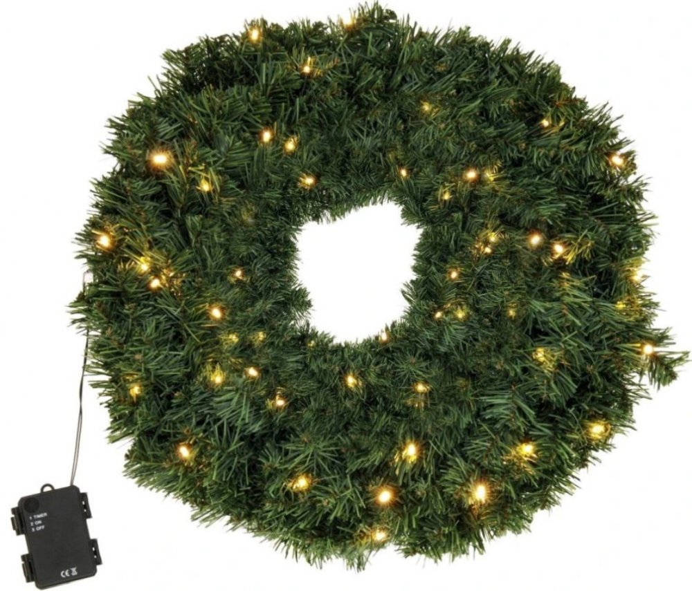 Věnec na dveře o průměru 60 cm. Obsahuje světelný řetěz s 30 teplými bílými LED světly. Tento dekorativní LED vánoční věnec je vhodný pro vnitřní i venkovní použití.