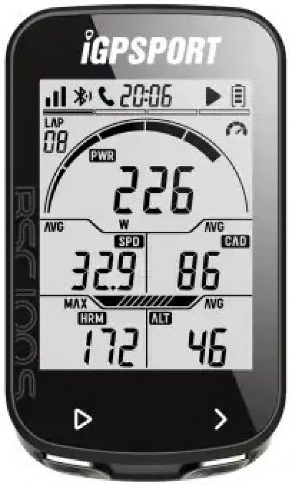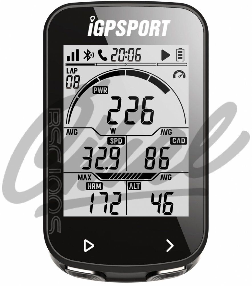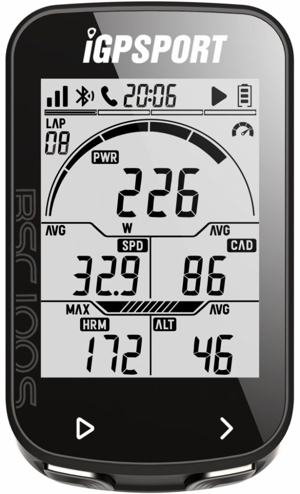 funkce: aktuální čas, čas jízdy, ujeté kilometry, teplota, okruhy, aktuální/průměrná/maximální rychlost, nadmořská výška, sklon, aktuální/maximální tepová frekvence, aktuální/průměrná/max. kadence, kalorie,