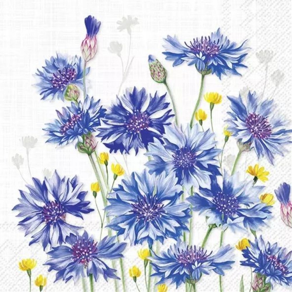 Klíčová slova: květiny, rostliny, chrpy, květy, ubrousky, ruční práce, decoupage, slavnostní nebo svatební tabule, ubrousky s potiskem, ubrousky s motivem, decoupage, ubrousková technika.
