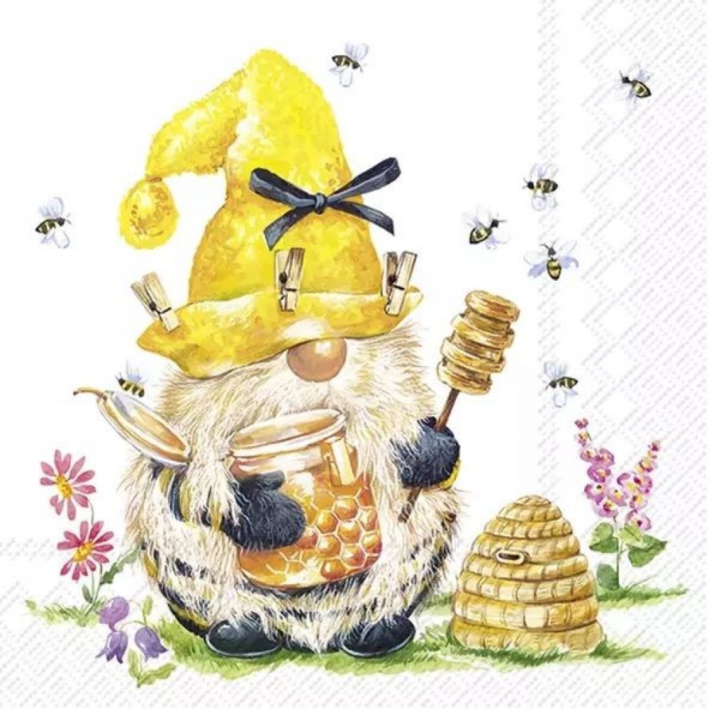 Klíčová slova: skřítek, trpaslík, včelař, med, včela, květiny, úl, komiks, ruční práce, ubrousky, decoupage, ubrousky s potiskem.