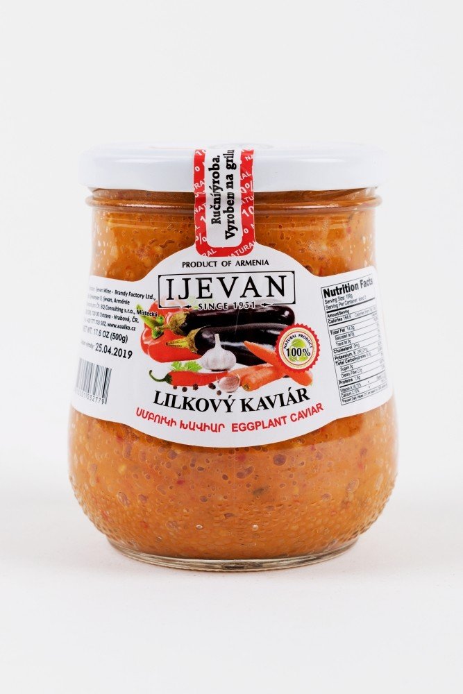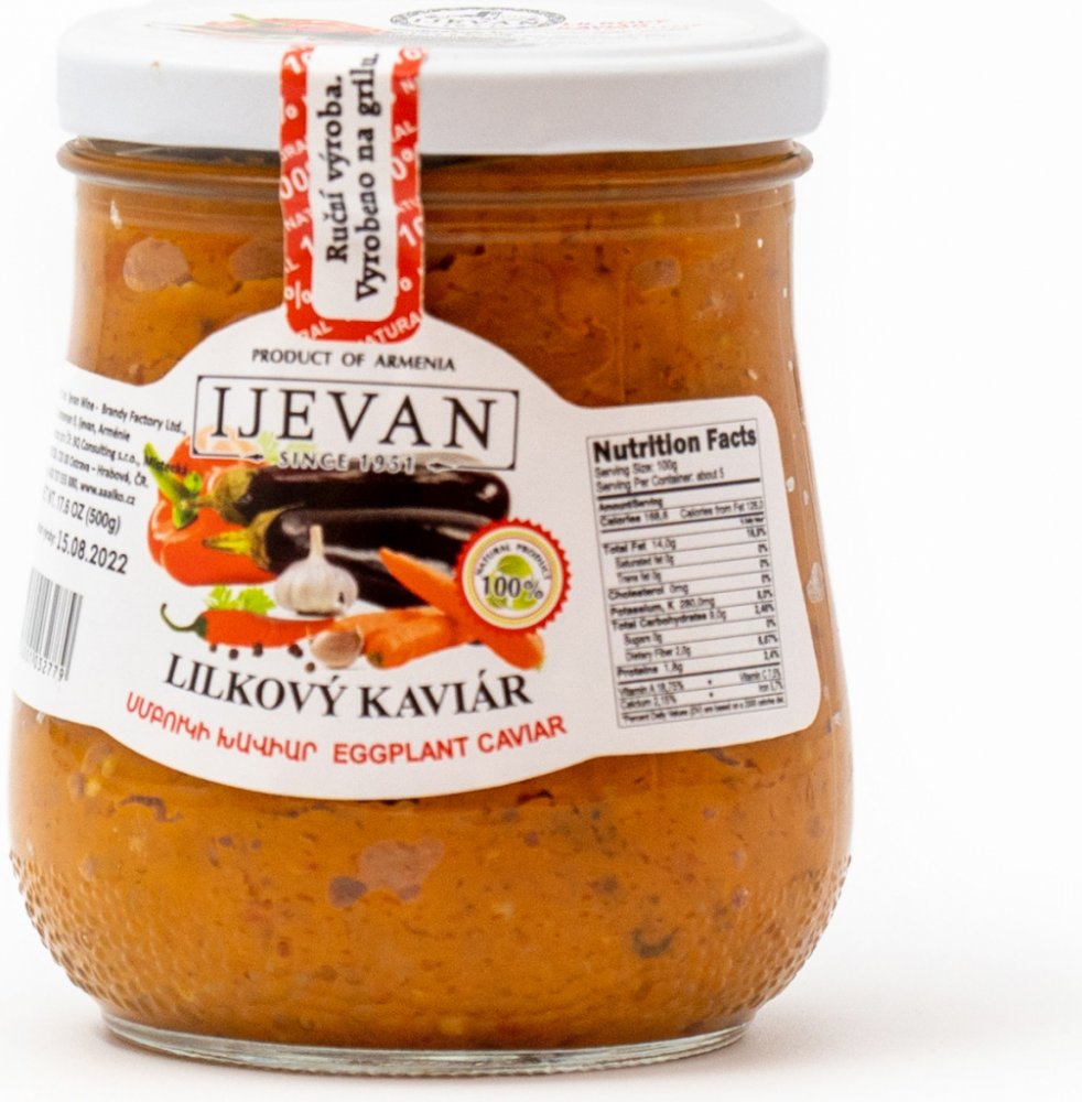 Složení: lilek, paprika, česnek, cibule, rostlinný olej, mrkev, rajský protlak, kopr, prtržel, koriandr, černý pepř a nové koření, pálivá paprika, sůl.