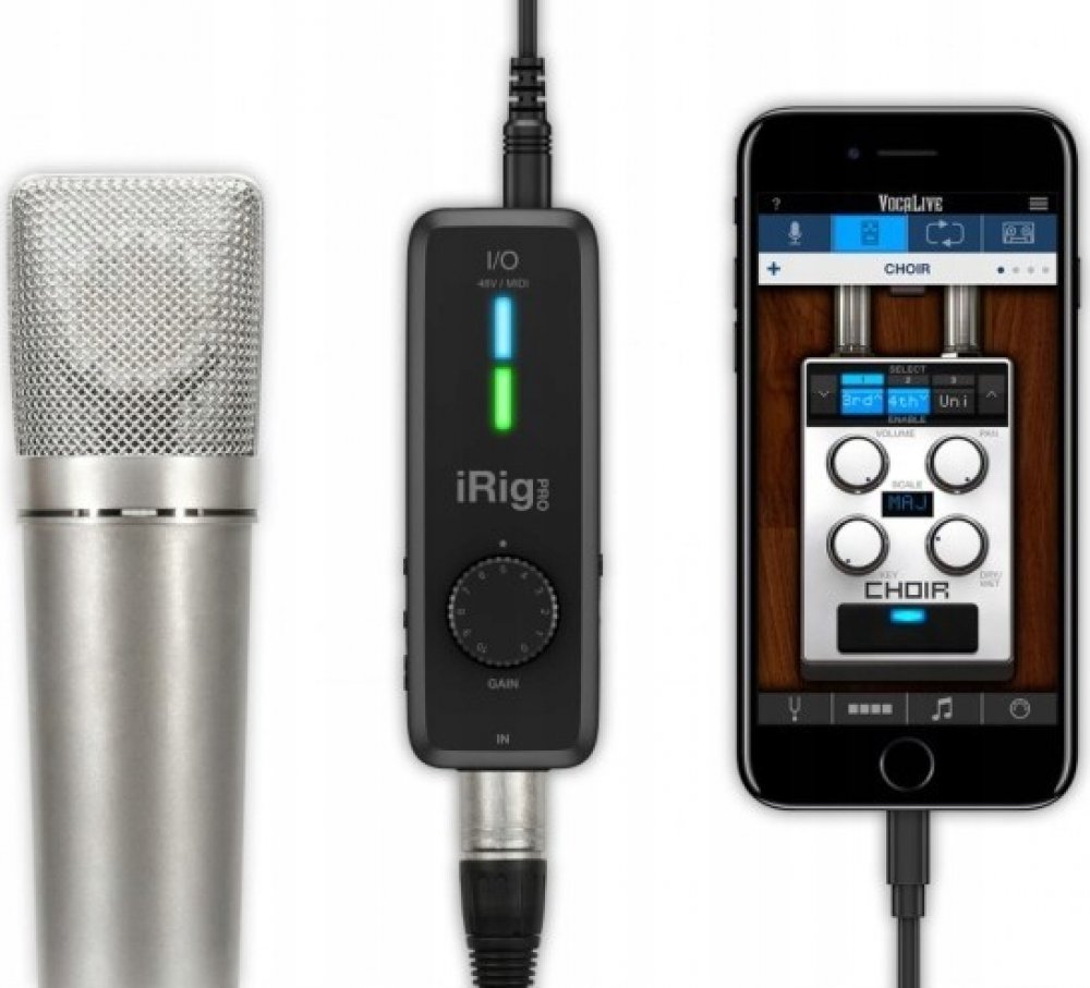 Kytarový převodník iRig PRO I/O je bohatě vybavené kompaktní audio/MIDI zvukové rozhraní pro iPhone, iPad, Mac nebo PC. Jedná se vlastně o takovou malou univerzální zvukovou kartu, která vám umožní záznam ať už budete kdekoliv. 24 bit A/D, D/A převodníky, které pracují až do 96kHz samplovací frekvence zaručují studiovou kvalitu zvuku a pomocí univerzálního Hi-Z konektoru (6,3 mm jack/XLR) můžete nahrávat prakticky cokoliv od zpěvu, elektrických nástrojů až po klávesy. Nemusíte se bát použít ani kondenzátorové mikrofony, protože iRig je vybaven přepínačem pro 48 V fantomové napájení. Regulovat sílu vstupního signálu nástroje/mikrofonu umožňuje potenciometr Gain. Nechybí ani MIDI In/Out, které je skvělým řešením pro ovládání kláves, kontrolerů a zvukových modulů. Externí MIDI zařízení připojíte prostřednictvím dodávaných kabelů 5-pin MIDI/2,5 mm jack. K odposlechu slouží sluchátkový výstup (3,5 mm jack) vybavený předzesilovačem a ovladačem hlasitosti. Zajímavé možnosti nabízí i samotné napájení iRigu. Kromě dvou AA baterií můžete využít adaptér, který bude současně nabíjet i váš iPhone nebo iPad. Poslední možností je napájení z počítače přes USB kabel. iRig PRO I/O má solidní vybavení i po softwarové stránce. V balíčku naleznete AmpliTube pro iOS, AmpliTube pro Mac/PC, SampleTank SE, T-RackS Deluxe a mnoho dalších. Vysoká kompatibilita, neomezené možnosti záznamu, studiová kvalita zvuku a bohaté softwarové vybavení umožní rozvoj vaší tvorby bez jakýchkoliv omezení.