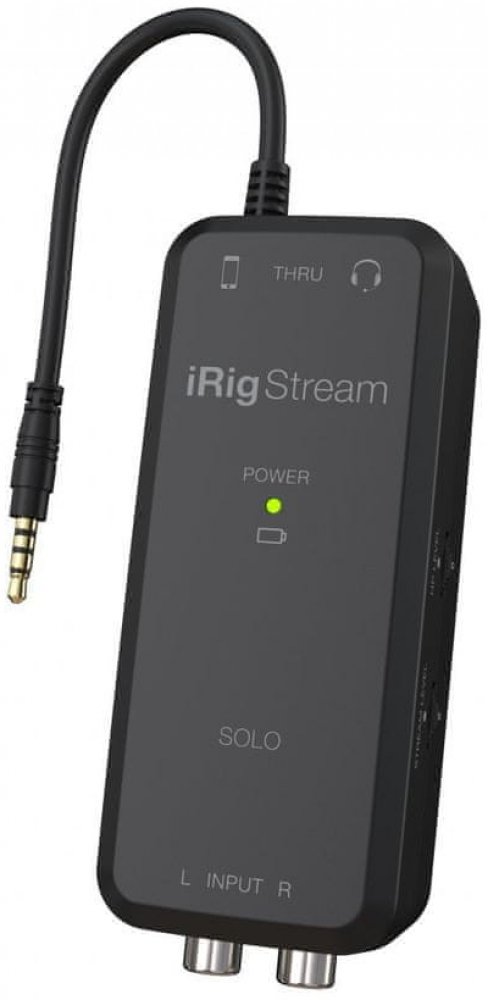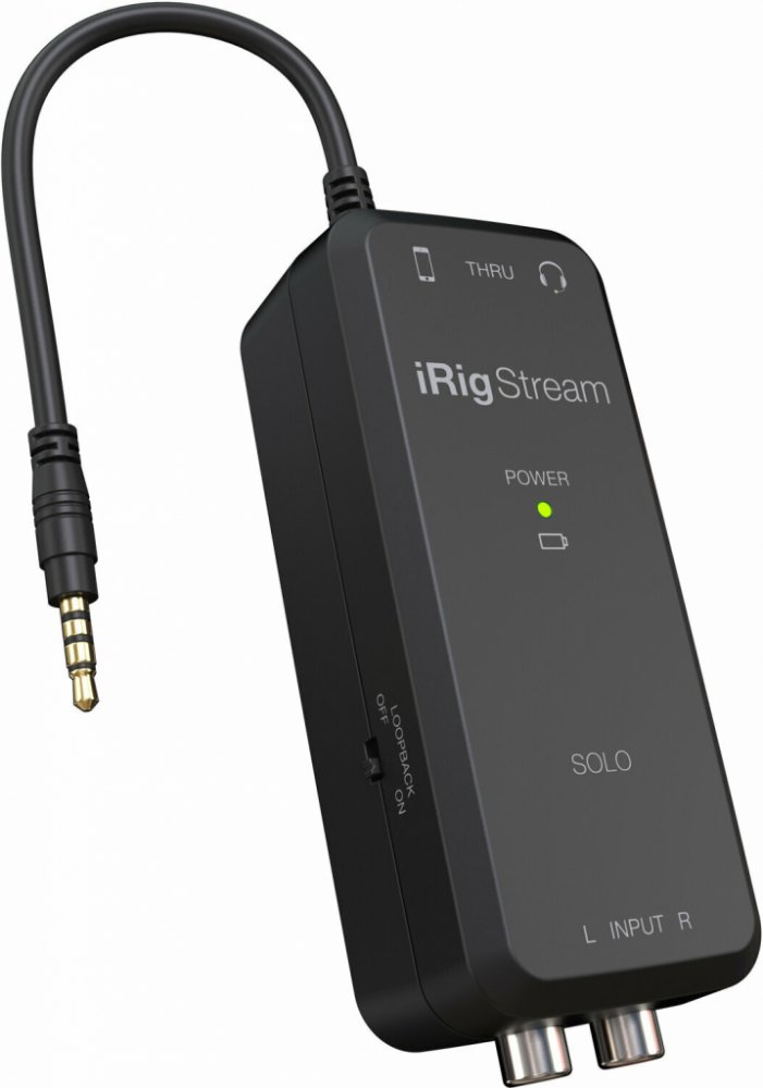 iRig Stream Solo je jednoduché zvukové rozhraní pro iPhone, iPad a Android zařízení, které vám umožní připojit až 3 různé zvukové zdroje a smíchat je do vašeho streamu.