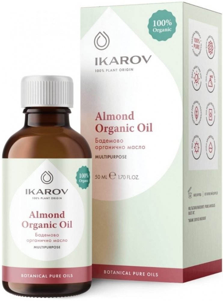 Mandlový olej Ikarov 50 ml Víceúčelový mandlový olej funguje jako přírodní změkčovadlo, zadržuje vlhkost v pokožce, díky čemuž je jemná a hladká. Rychle se vstřebává do pokožky a nezanechává žádné zbytky. Mandlový olej je vhodný také pro citlivou pokožku. Vyživuje kořínky vlasů, stimuluje jejich růst a zvyšuje lesk a pružnost vlasů. Přidané antioxidanty chrání pokožku před volnými radikály a škodl...