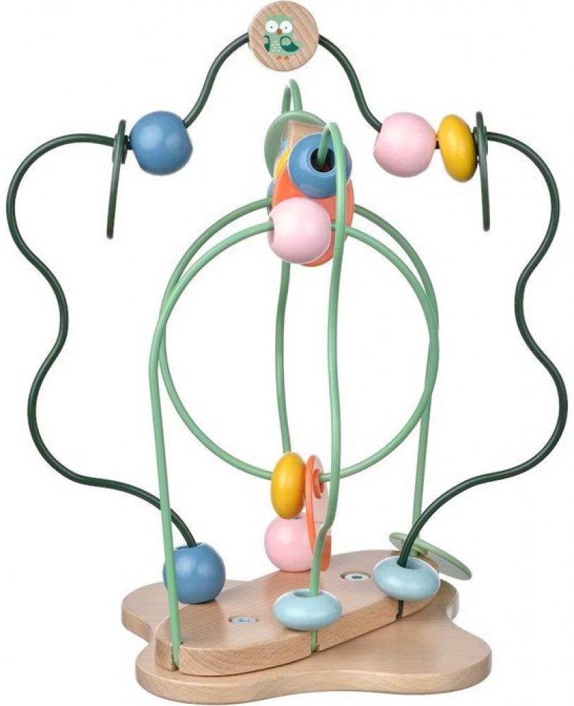 Větší drátěný labyrint na dřevěném podkladu pomáhá dětem především trénovat jemnou motoriku alogické myšlení. Přesouvání dřevěných figurek ve tvaru listů, poupat a květin po dráze je zábavný způsob, jak se naučit barvy a tvary. Na labyrintu ve tvaru stromu, se vaše dítě může učit střídání ročních období – na jaře jsou všechny korálky nahoře a na podzim padají na zem. Celkem je zde 20 korálků.