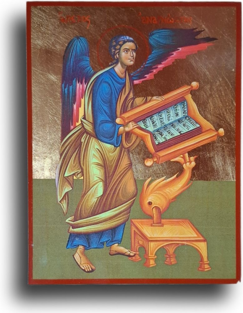Tato ikona zobrazuje nebeskou bytost – anděla, který v liturgické službě představuje čtenáře Božího slova. V řečtině „ἀναγνώστης“ (anagnóstis) znamená doslova „ten, kdo čte nahlas“. Tento titul byl ve staré církvi udělován nižším duchovním, kteří předčítali ze svatých Písem při bohoslužbách – ale v ikonografii získal andělskou podobu jako symbol hlasatele Boží...