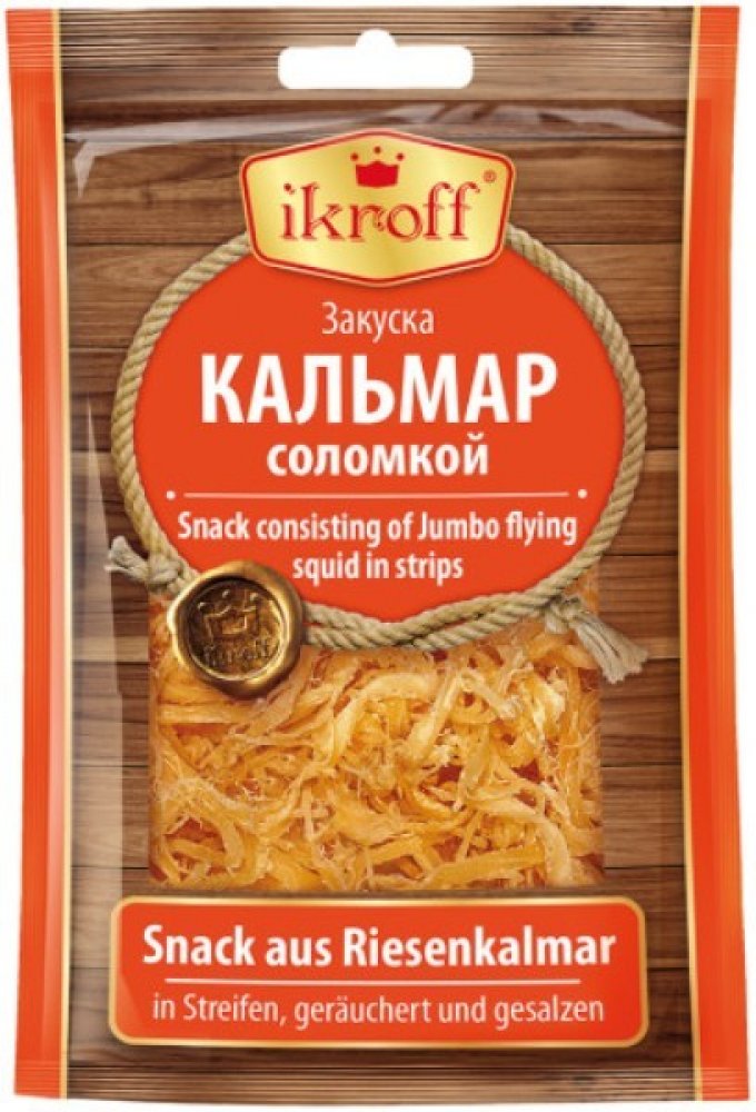 Složení: obří kalamáry ( dosidicus gigas) 92%, cukr, sůl, zvlhčovadlo sorbit, zvýrazňovač chuti E621, kouř.