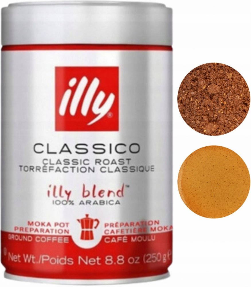 Pražírna kávy Illy je jednou z nejznámějších pražíren na světě. V Mletá káva Illy Classico Moka jsou použitá zrna Arabica nejvyšší jakosti, které se vyznačují nižším obsahem kofeinu. Mletá káva Illy Classico Moka má typickou, hustou červenohnědou cremu.