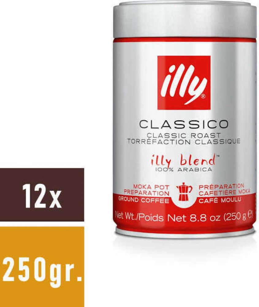 Illy je známé svou pečlivostí a kvalitou při finalním balení kávy. Mletá káva Illy Classico Moka je středně pražená káva skvělé chuti a intenzivní vůně.