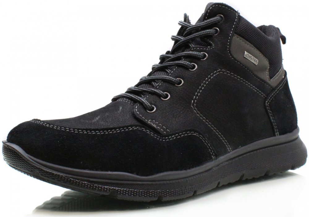 Svršek: Svršek obuvi je vyrobený z koženého materiálu s membránou proti vodě. Barva svršku je černá.