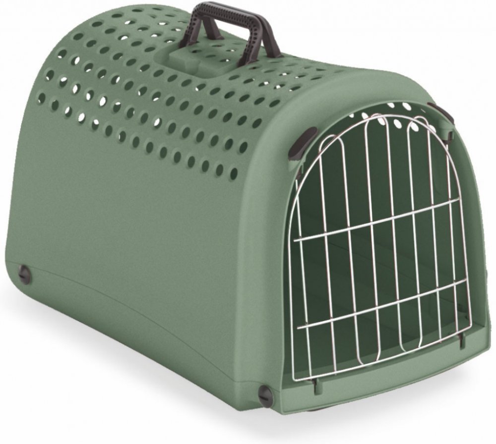 Přepravní tašky a boxy Plastová přepravka Imac Linus 2nd life, khaki: plastová přepravka pro malé psy a kočky s kovovými dvířky, otevírání zepředu, s madlem pro snadné přenášení, s otvory pro cirkulaci vzduchu, italský design, vyrobena z recyklovaného netoxického plastu (2nd life), délka 50 cm, šířka 32 cm, výška 35 cm, nosnost 5 kg.