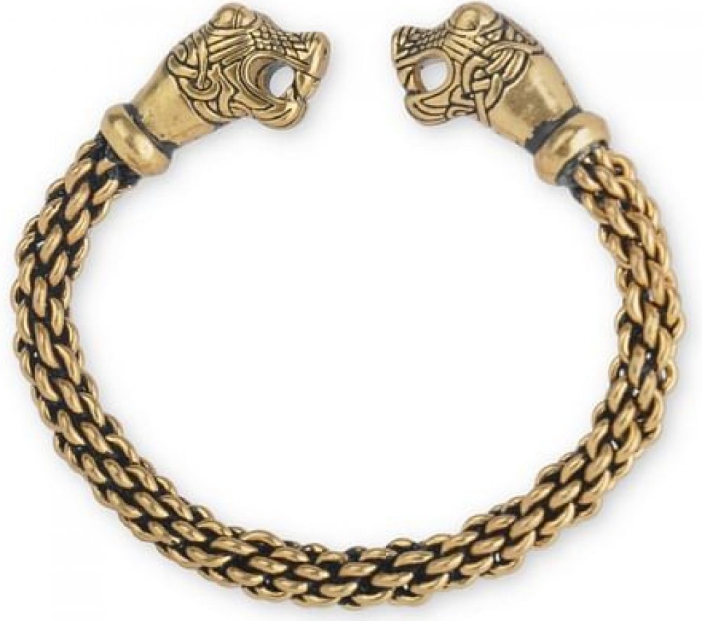Oviňtě si své zápěstí draky, kteří kdysi zdobili válečné vikingské lodě. Krásný vikingský náramek je vyroben z kroucených bronzových drátů a se zakončením v podobě dračích hlav. Inspirací pro tento nádherný šperk se stala dračí hlava z hrobu Vikingů v Osebergu (Norsko). Náramek se hodí pro obvod zápěstí 15 až 19 cm.