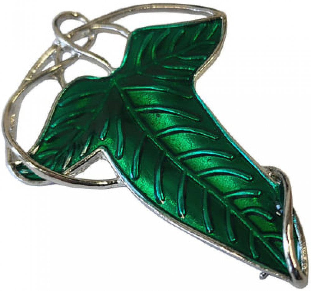 Když společenstvo prstenu opouštělo elfský les Lorien, dostali všichni jeho členové od elfů pláště se sponou ve tvaru zeleného elfského lístku s stříbrným žilkováním. Tato spona je vyrobena z pewteru, zdobená zeleným smaltováním. Rozměry jsou 5,7 x 4 cm. Šperk je na zadní straně opatřen špendlíkovým zapínáním. Krásný stylový doplněk vhodný jak ke kostýmu, tak k běžnému nošení.