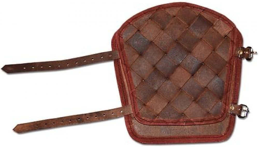 Stylové vikingské nátepníky z kůže, v černé nebo hnědé barvě. Skvělý doplněk kostýmu vikingského bojovníka, který je zároveň spolehlivou a účinnou ochranou při šermu. Připevňují se pomocí přezek vzadu. Uvedená cena je za pár nátepníků. Kvalita kůže může lehce kolísat - na pruzích, z nichž jsou nátepníky vyrobeny, mohou být drobné kazy, které však nemají vliv na kvalitu nátepníků. Délka nátepníku: 23 cm Šířka nátepníku (zápěstí): cca 19 cm Šířka nátepníku (předloktí): cca 24.5 cm Doporučujeme kůži ošetřit voskem nebo olejem pro delší trvanlivost a hezčí vzhled.