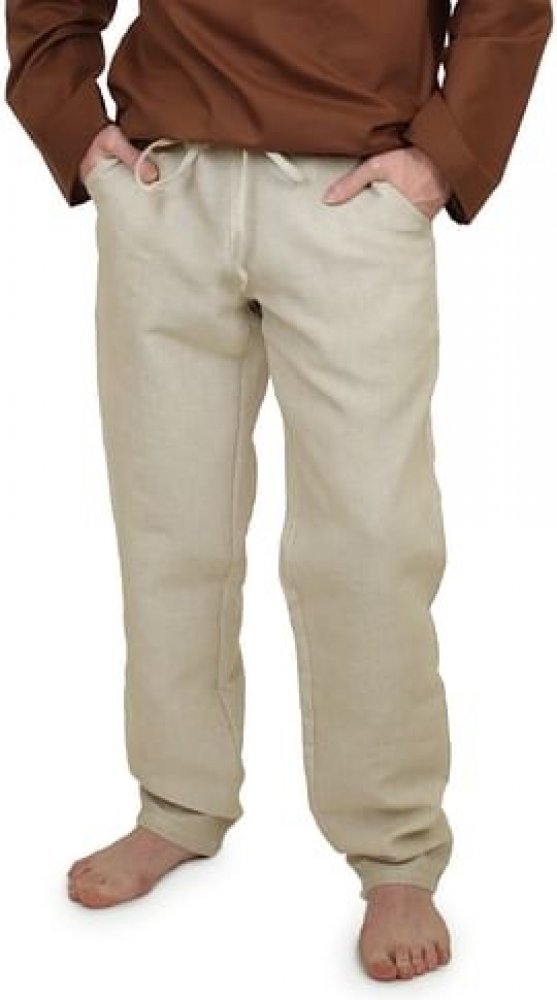 Jednoduché pánské kalhoty volného střihu, na jejichž ušití naše švadlenky použily kvalitní 100% len, si ihned zamilujete. Lněná látka vyniká svou lehkostí a prodyšností, kterou oceníte především v letních měsících. Na zahrádce si klidně můžete vychutnat jedno, dvě nebo tři... V pase jsou kalhoty regulovány šňůrkou – vždy je možné povolit či stáhnout. A do kapes se vám vejde dostatek zlaťáků, abyste mohli pozvat na žejdlík i přátele. A pokud se druhý den chystáte na výpravu, do boje, na zahradu či k rodinnému obědu, lněné kalhoty si klidně nechte na sobě, hodí se pro každou příležitost! Lněné pánské kalhoty šijeme ve dvou barvách: přírodní, černá. Chtěli byste hodit do lnu i svou drahou polovičku? Mrkněte na naši nabídku lněné módy, kde rozhodně něco vybere.