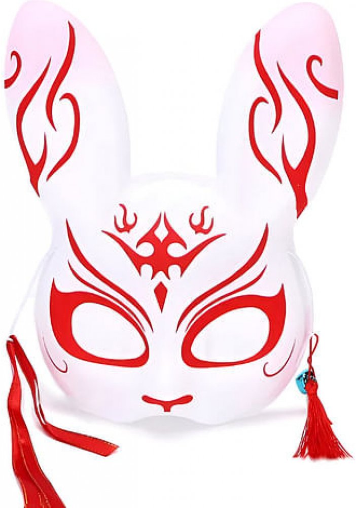 S maskou zajíce s rolničkou ve stylu japonského anime budeš ozdobou každého conu, festivalu i karnevalu. Originální doplněk kostýmu pro cosplayery, na párty i pro divadlo. Maska je malována ručně a kresba se může lišit oproti produktové fotografii