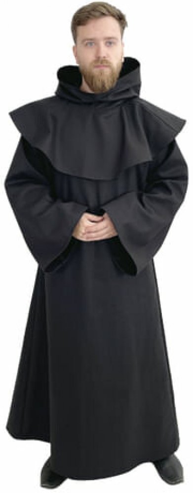 Tato černá mnišská kutna je víc než kus látky. Je to plášť, který skryje vaši identitu, stejně jako vaše záměry! Ať už se chystáš být zasvěcenec do klášterního řádu, temný kultista, poutník, léčitel nebo alchymista, tento oděv tě doprovodí na cestě skrze příběh tvé postavy. Kutna je ušita v naší dílně s důrazem na funkčnost a autentičnost! Je ideální pro LARP, fantasy kostýmy i historické události...