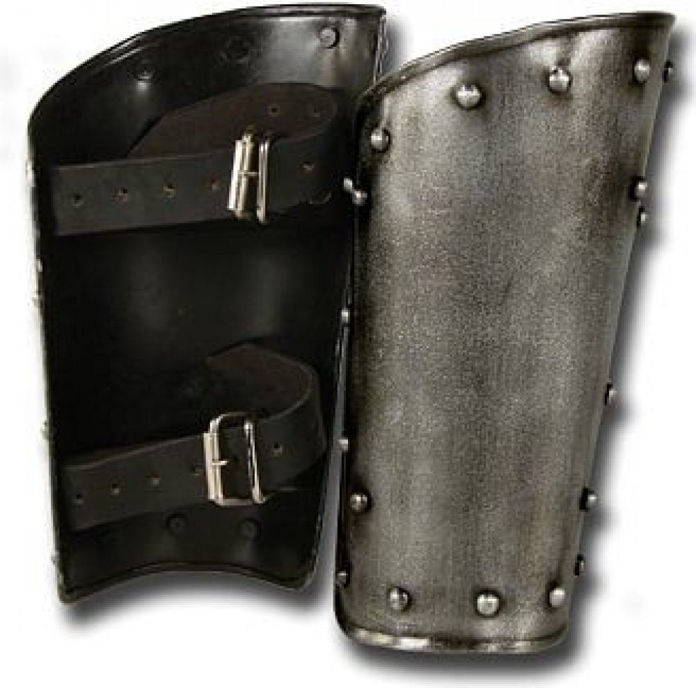 Nátepníky zhotovené z cca 1,2 mm silného plechu s matnou černěnou povrchovou úpravou. Upevňují se dvěma koženými řemínky šíře 2,5 cm. Délka nátepníku je cca 22 cm. Vskutku stylový doplněk kostýmu bojovníka, který je zároveň spolehlivou a účinnou ochranou při šermu. Prodáváme pouze v páru, uvedená cena je za pár nátepníků.