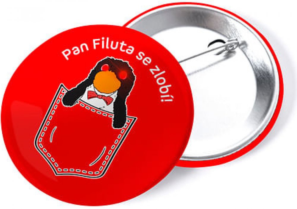 Pan Filuta se zlobí! Originální placka s panem Filutou potěší všechny fanoušky Červeného trpaslíka i zabijáckých tučňáků se svítícíma očima. Skvěle se bude vyjímat na batohu, žebradle nebo třeba bundě či kabátu. Velikost placky je cca 5,8 cm a má krásnou, sytě rudou barvu.