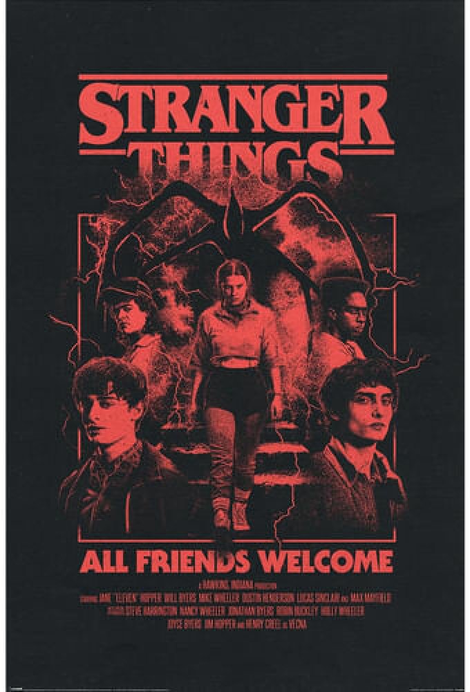 Ozdob si pokoj a přiveď kousek Hawkins přímo na svou zeď! Tento černo-červený plakát s nápisem All Friends Welcome okamžitě upoutají pozornost a dodá tvému prostoru dramatickou atmosféru! Rozměr plakátu je 61 x 91,5 cm. Jestli sis zamiloval seriál Stranger Things, tahle dekorace je jasná povinnost!