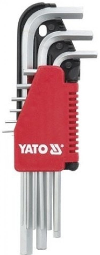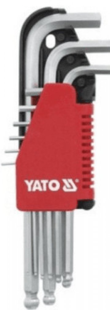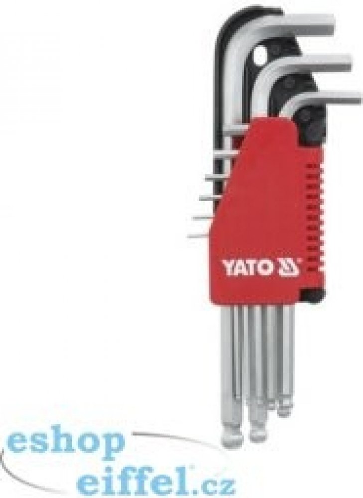 Sada 9 ks extra delších imbusových klíčů běžných rozměrů s kuličkou, uložených v přehledném, plastovém držáku.