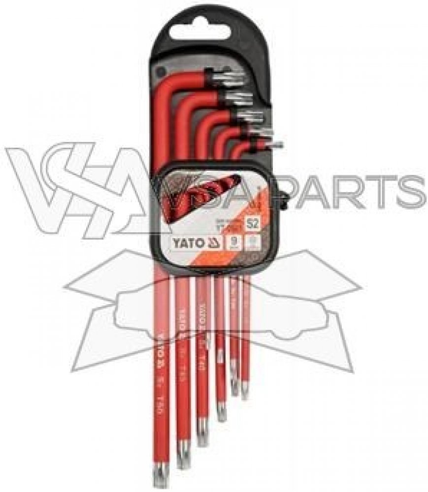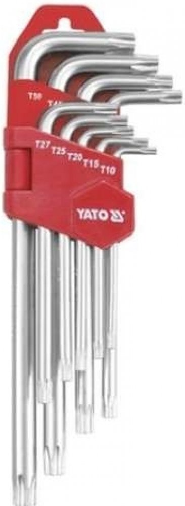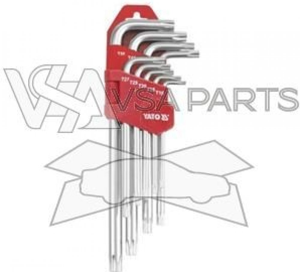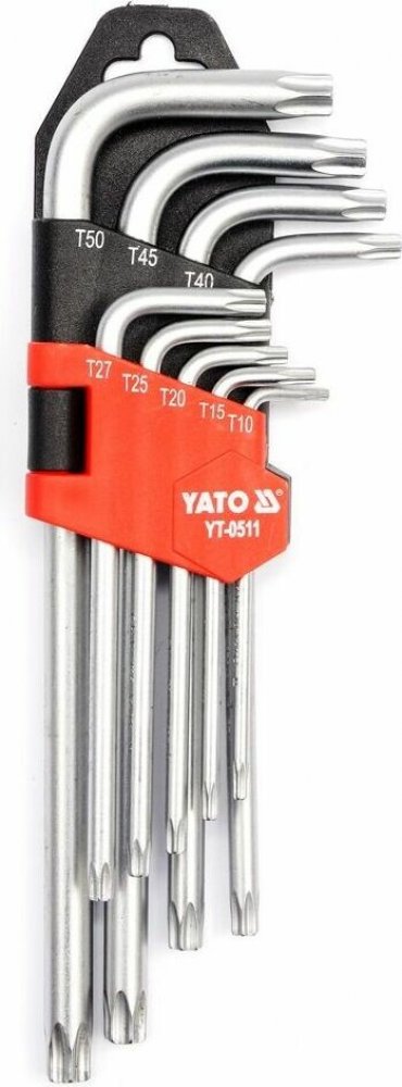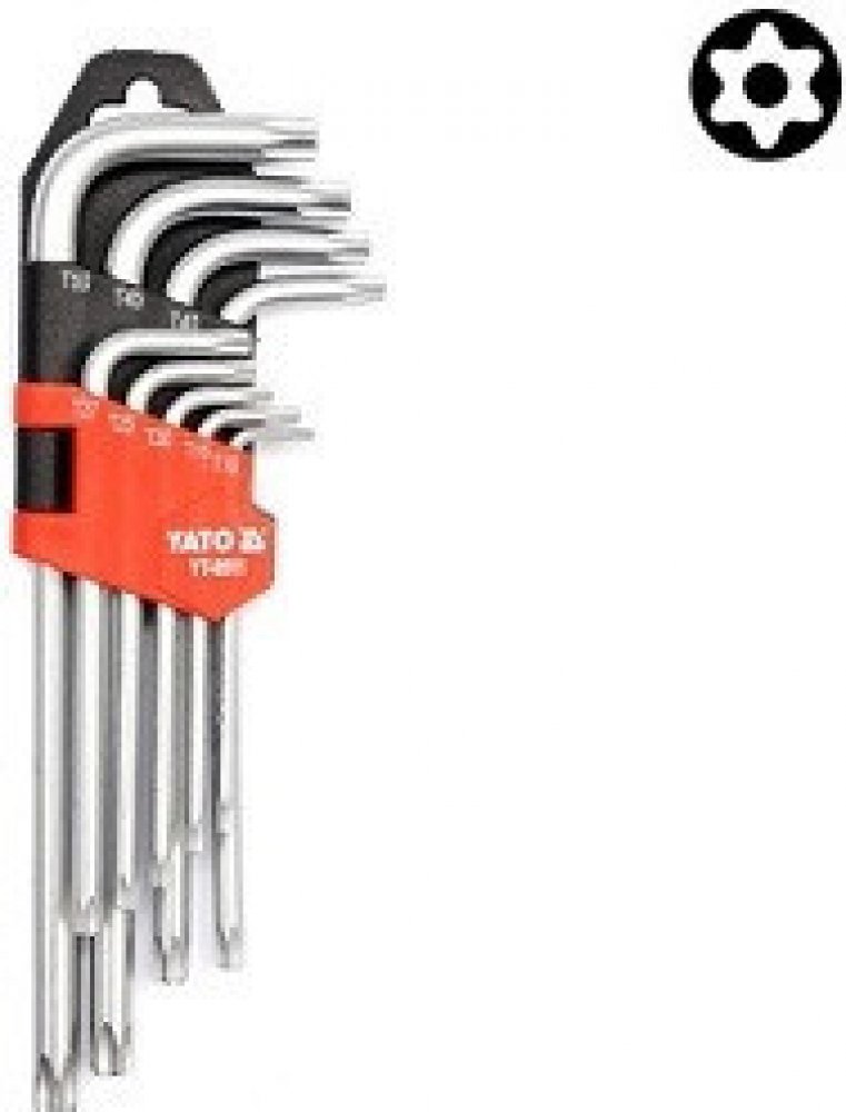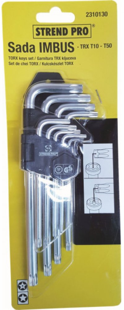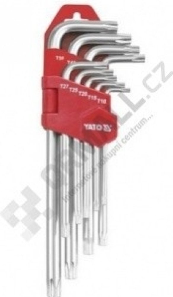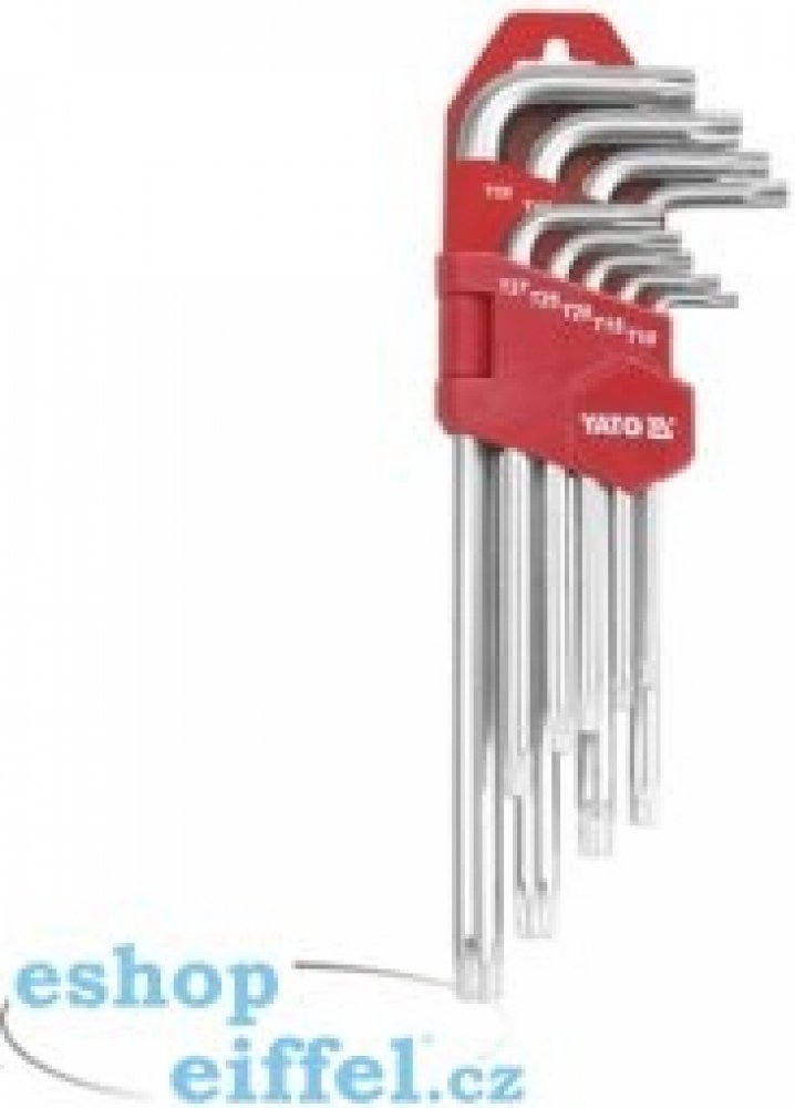 Sada 9 ks TORX klíčů běžných rozměrů s otvorem Tamperproof, uložených v přehledném, plastovém držáku.