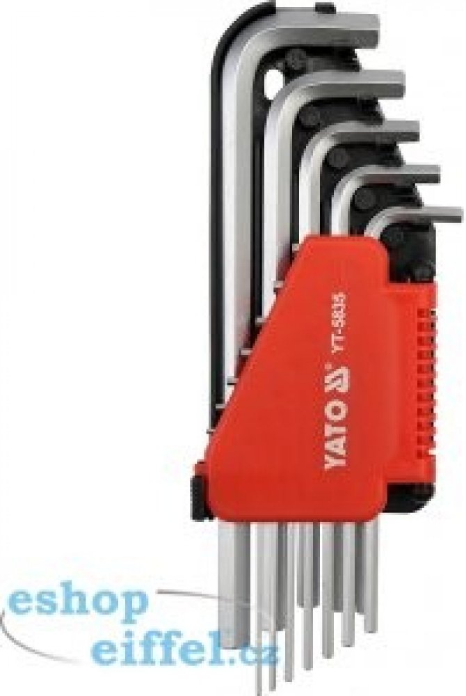 Sada 12 ks imbusových klíčů běžných rozměrů, uložených v přehledném, plastovém držáku.