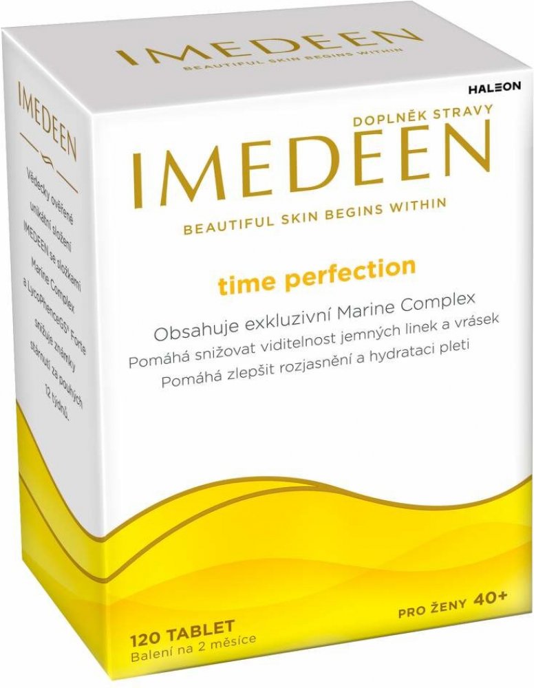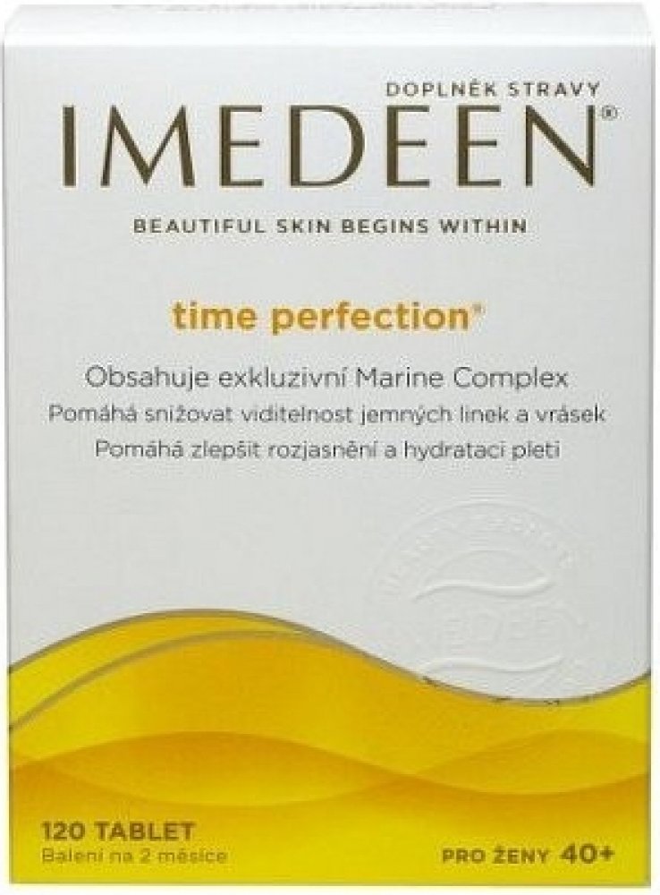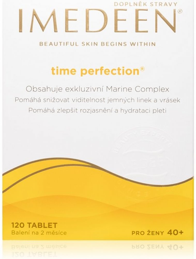 Imedeen Time Perfection je doplněk stravy vytvořený pro specifické potřeby pokožky žen ve věku 40+. Imedeen Time Perfection je krása pleti ukrytá v tabletách, navíc s vitaminem C podporujícím normální tvorbu kolagenu v kůži.