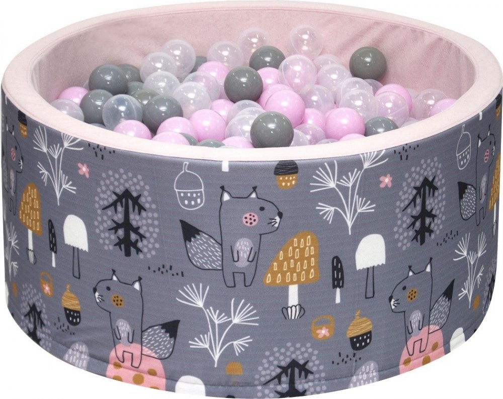 Suchý bazén je obšitý krásným a měkkým velurovým potahem. Je uzavíratelná na zip, takže ji můžeme snadno vyprat.