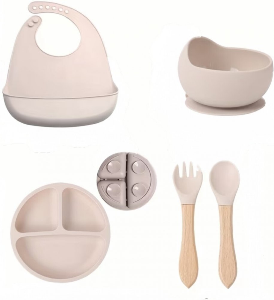 Sada obsahuje veškeré potřebné příslušenství, jako je talíř, miska, příbory a bryndák. S touto sadou bude vaše děťátko připraveno na každé jídlo. Miska a talířek mají přísavku. Už žádné padající talíře během jídla.