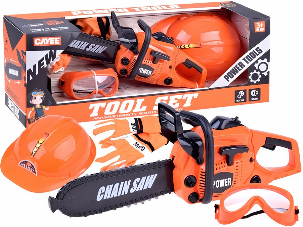 Hračka Pila motorová řetězová + pracovní přilba sada splňuje všechny normy EU.