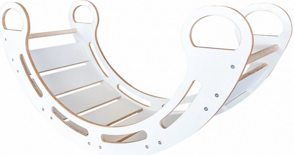 Kvalitní Montessori houpačka v bílém provedení pomáhá vašemu dítěti hrát si a rozvíjet se zároveň.