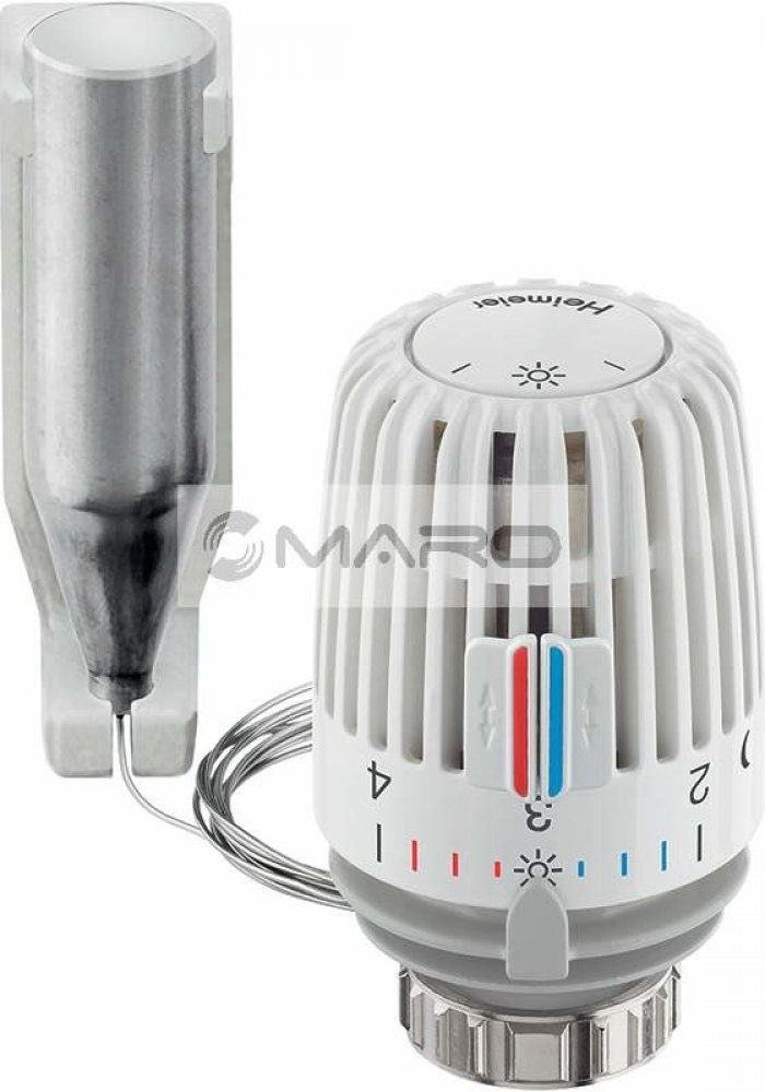 IMI Heimeier Hlavice termostatická K s odděleným čidlem pro regulaci teploty v místnostech• kapalinou plněné čidlo s vysokou regulační schopností a přesností• dvě zarážky Sparclip pro uživatelské omezení nebo blokování minimální a maximální teploty• plastická značka pro nevidomé• hlavice s odděleným čidlem umožňuje instalaci termostatické hlavice zakryté závěsy, krytem nebo jinými překážkami