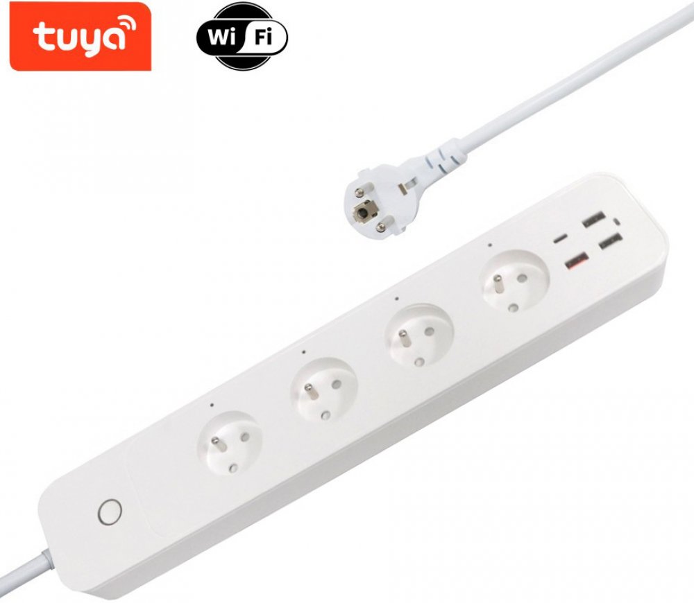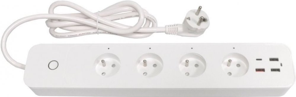 Kompaktní prodlužovací přívod se čtyřmi zásuvkami, třemi porty USB 2.0 a jedním portem USB-C s podporou bezdrátového Wi-Fi rozhraní a hlasového ovládání Amazon Alexa a Apple Siri. Lze s ním tedy připojit nejen elektrické spotřebiče, ale současně nabíjet až čtyři mobilní zařízení do max. celkového nabíjecího proudu 5,4 A. Samozřejmostí je také ochrana proti přetížení a zkratu.