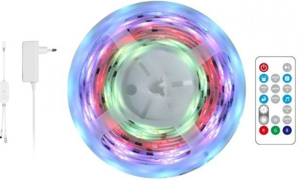 Kontoler se zabudovaným mikrofonem umožňuje LED pásku reagovat na přehrávanou hudbu-lze na dálkovém ovladači navolit ze 4 režimů.