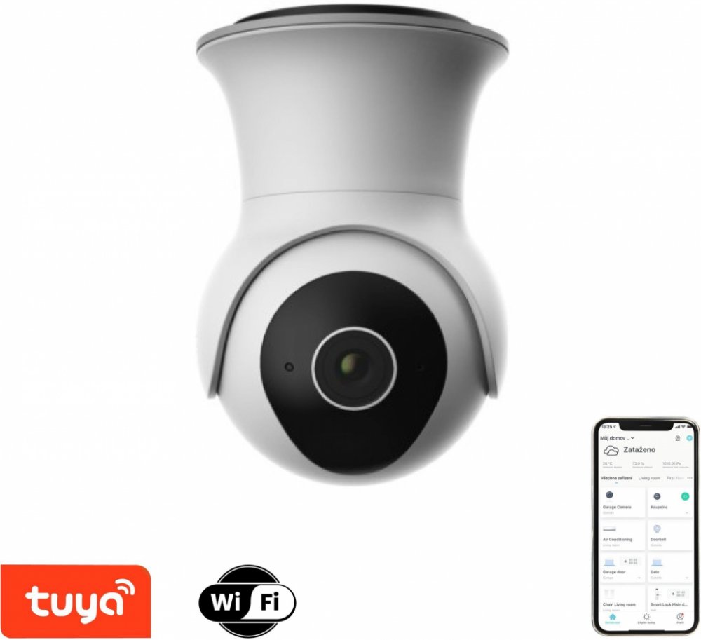 Otočná chytrá venkovní kamera s detekcí pohybu, zorným úhlem 85°, snímačem s rozlišením 2,0 Mpx a podporou ONVIF. Je schopná snímat video ve Full HD rozlišení 1920 x 1080 obrazových bodů při 25 fps. Rotační mechanismus kamery umožnuje monitorovat prostor v zorném úhlu 355° (náklon 10-75°). Pro případ zhoršených světelných podmínek je přítomen IR přísvit do 10 m. Součástí kamery je integrovaný reproduktor a mikrofon, který umožní kvalitní oboustrannou komunikaci. Připojení lze jednoduše realizovat bezdrátově skrze Wi-Fi. Natočené záznamy je možné ukládat i na vestavěnou microSD kartu o kapacitě 16 GB. Je kompatibilní s iOS, Android, Amazon Alexa, Apple Siri zkratky, Google Assistant a Tuya.