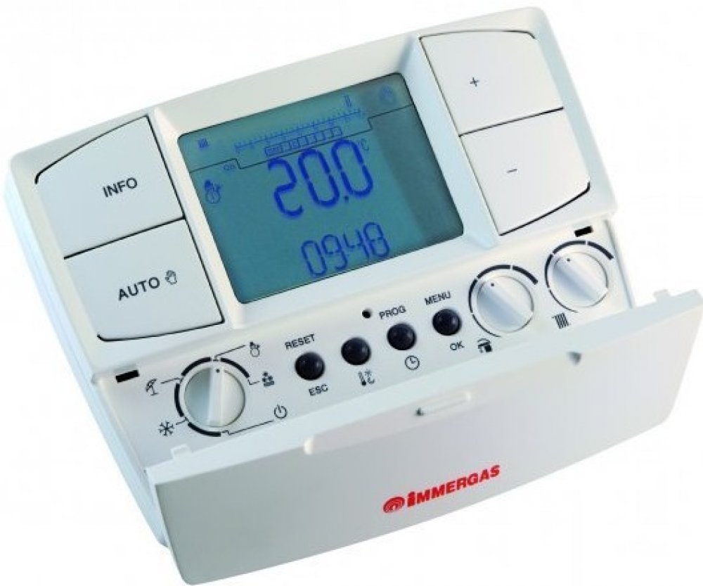 Ve spolupráci s venkovní sondou dokáže regulovat teplotu výstupní topné vody dle aktuálních klimatických podmínek. Jednotka je vybavena dvěma komunikačními protokoly na bázi protokolu OpenTherm, který je však upraven pro kotle Immergas. Okruh TUV je řídicí jednotkou regulován jak teplotně tak i časově. K dispoizici jsou čtyři časové intervaly úpravy ohřevu TUV na každý den.