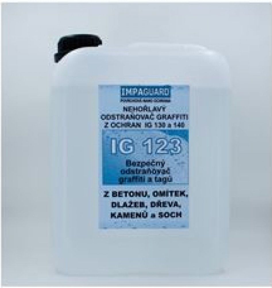 IG 123 je speciálně vyroben jako absolutně bezpečný odstraňovač a čistič tagů nebo graffiti z ploch ošetřených antigraffiti ochranami IG 130 a 140, které jsou aplikované na citlivých materiálech, např. barvy, karosérie, dřevo, dopravní značky a některé plastové povrchy. Graffiti rozpouští pomalu a postupně. Jeho působení lze kdykoli zastavit a tím minimalizovat riziko poškození původního povrchu. ...