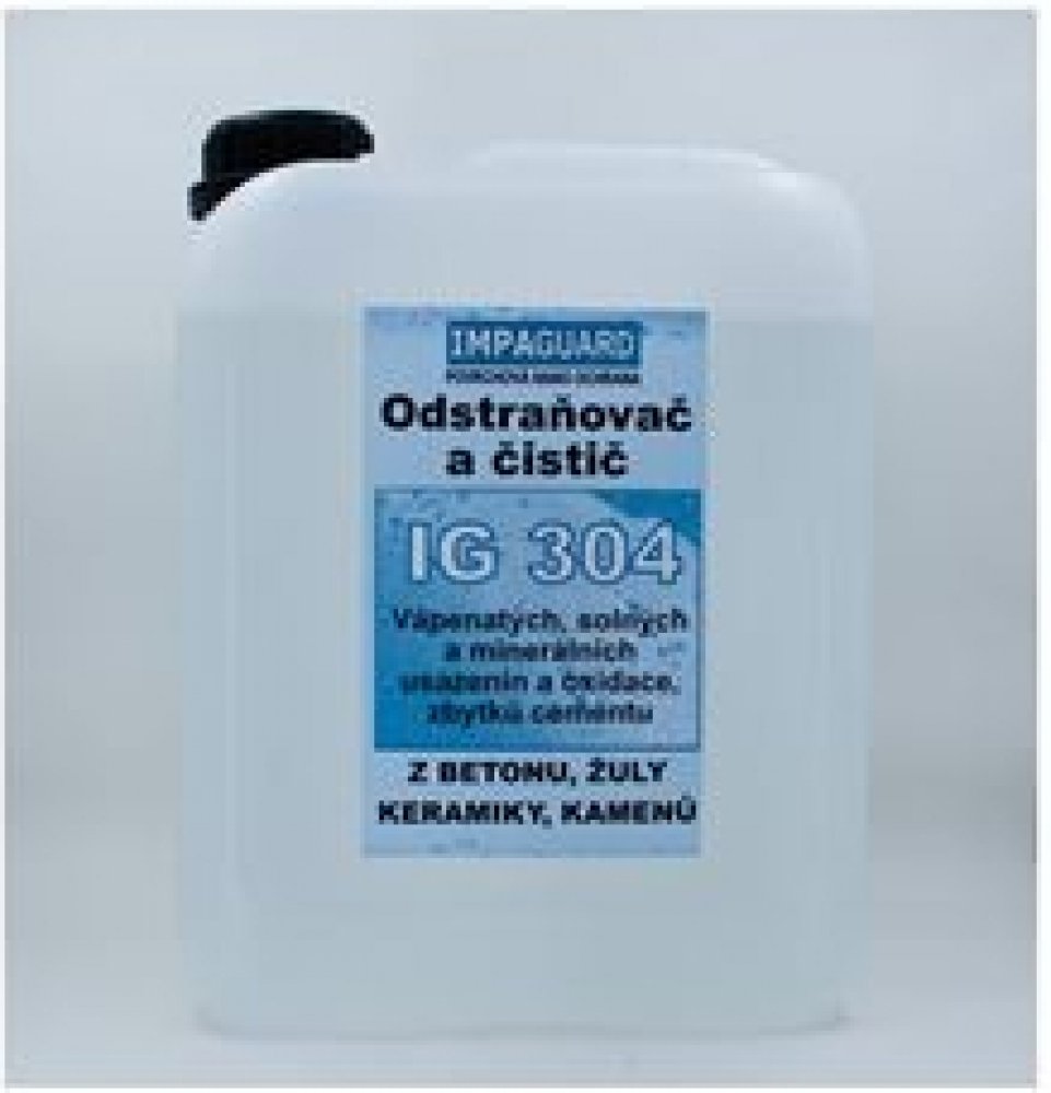 IG 304 je určen pro odstraňování vápenatých a minerálních usazenin a rzi vodního kamene, z cihel, keramických obkladů, mozaikových obkladů, kameniny, tvrdého kamene, z materiálů odolných kyselinám a všude tam, kde nečistoty vytváří s těmito materiály tvrdé silikáty, které nelze odstranit běžnými přípravky. Jedná se o extra silný čistící koncentrát, určený pro použití v teplárnách a topných systéme...