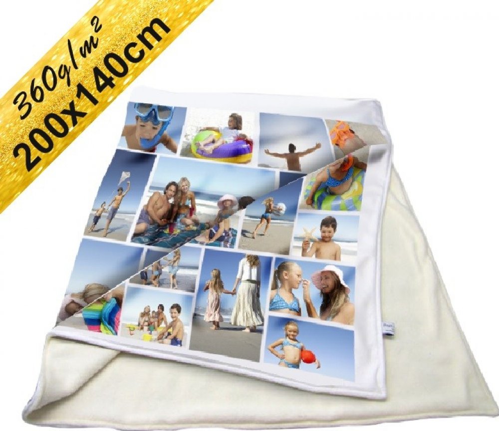 Zákazníky oblíbená a doporučovaná deka z oboustranně česaného Fleecu s gramáží 360g/m. Díky této šabloně máte zcela volnou ruku při sestavování deky a fotografie můžete rozmístit přesně podle svých představ. Fotografie lze doplnit libovolným textem či doplňkovými motivy z nabídky. Takto zhotovený tisk je nejen velice nevšední, ale také velmi odolný a dá se prát na 40°.