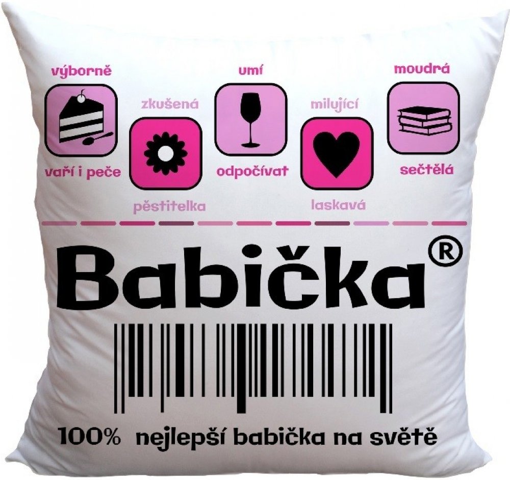 Originální polštářek s vtipným textem a motivem. Má oboustranný potisk se zapínáním a vyjímatelnou výplň. Polštářek s motivem pro babičku.